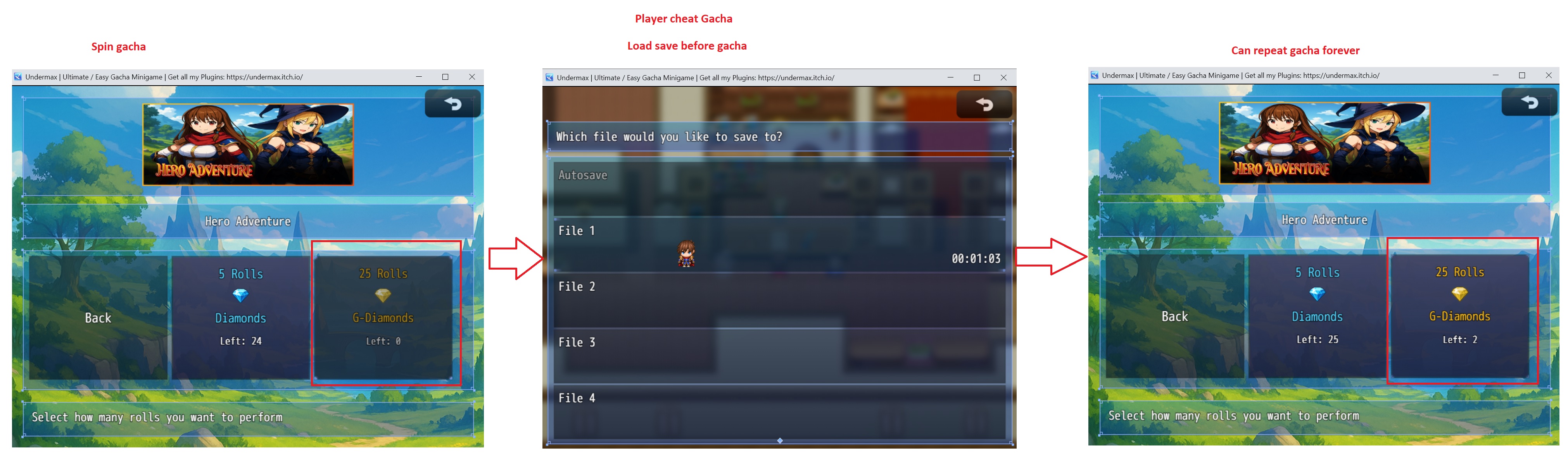 Is there any way to prevent players from cheating with gacha items? I want to keep the save function so the player can save as many slots as they want. but they can save before using the gacha, then reload that save file and use the gacha repeatedly until they get what they want. I want to prevent this.